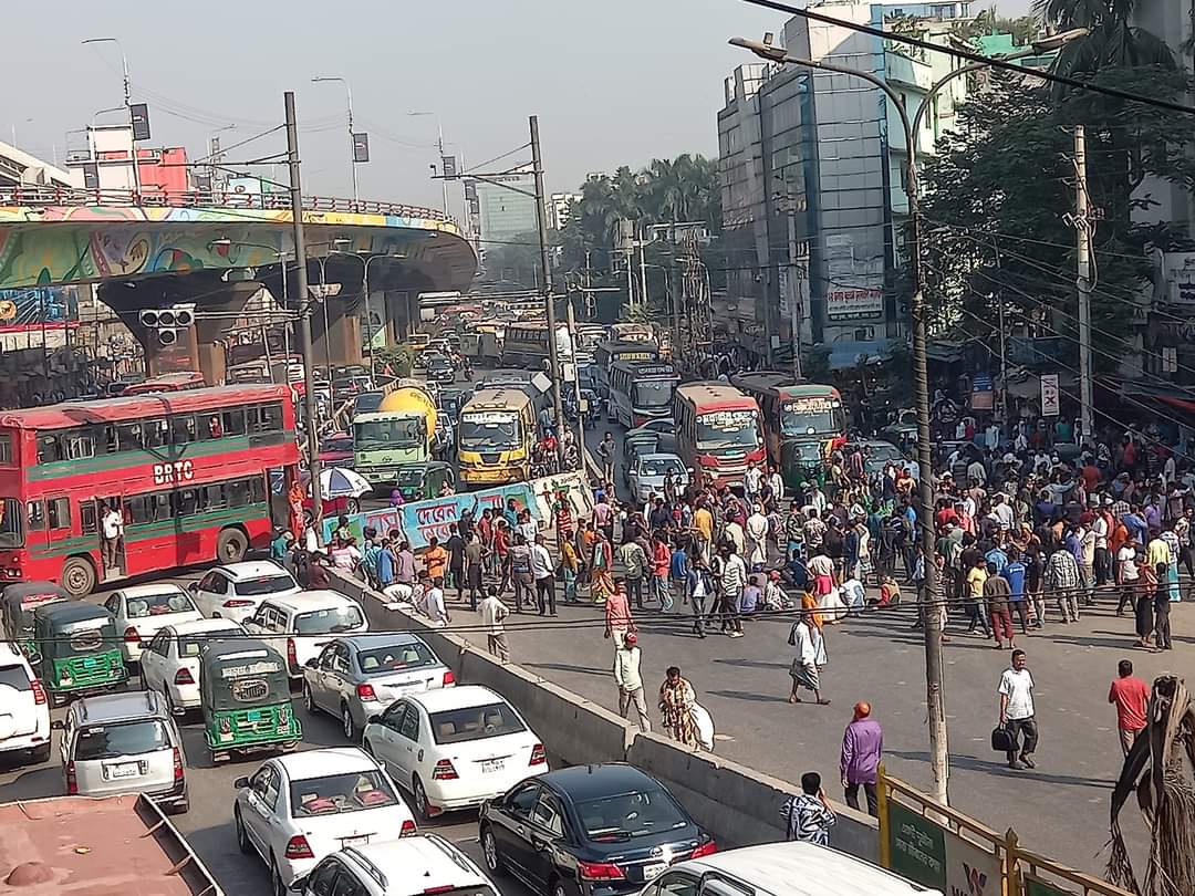আজ বৃহস্পতিবার (২১ নভেম্বর) সকাল থেকে মোহাম্মদপুর, আগারগাঁও, গাবতলী, মিরপুর, ডেমরা ও মহাখালী, মিরপুর ১০, বাড্ডা, রামপুরা, মগবাজার এলাকায় সড়ক অবরোধ করছেন তারা। এতে করে ওইসব এলাকায় যান চলাচল বন্ধ হয়ে গেছে। সৃষ্টি হয়েছে ব্যাপক যানজট। এতে করে ভোগান্তিতে পড়েছেন অফিসগামীসহ বিভিন্ন গন্তব্যের উদ্দেশ্যে বের হয়ে আটকে যাওয়া মানুষ।